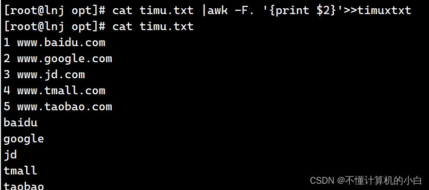 cat timu.txt |awk -F. '{print $2}'>>timuxtxt