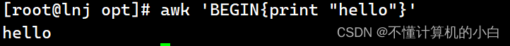 Awk ‘BEGIN{print “hello”}’