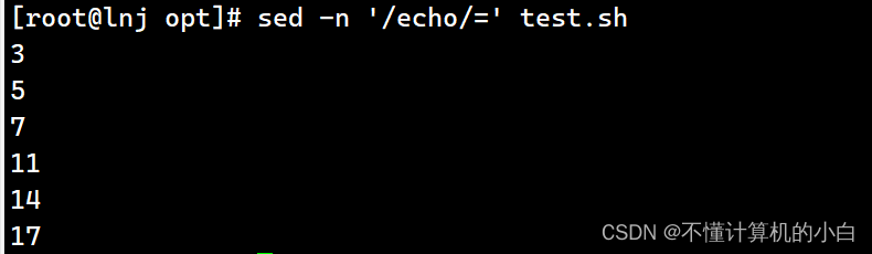 sed -n '/echo/=' test.sh输出echo所在的行=表示输出行号