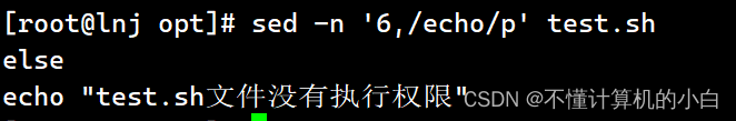 sed -n '6,/echo/p' test.sh表示输出从第六行到包含echo的行