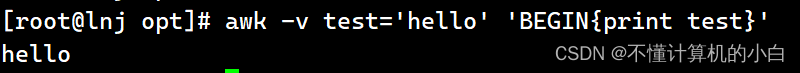 awk -v test='hello' 'BEGIN{print test}'这里可以给变量定义然后输出