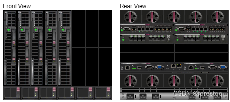 本例HP C7000刀片服务器采用了5块全刀刀片,每刀服务器有4块10GB网卡,通过GbE2c刀片背板网络交换机上行与网络交换机互联。