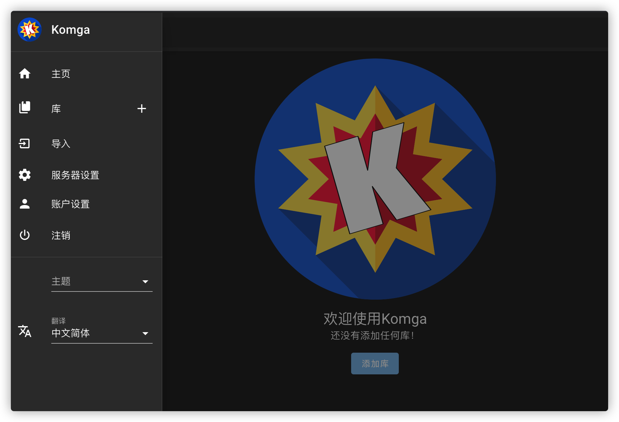 添加库,这个 /data 是容器内的目录,对应了我们前面映射的目录 /docker/komga/data