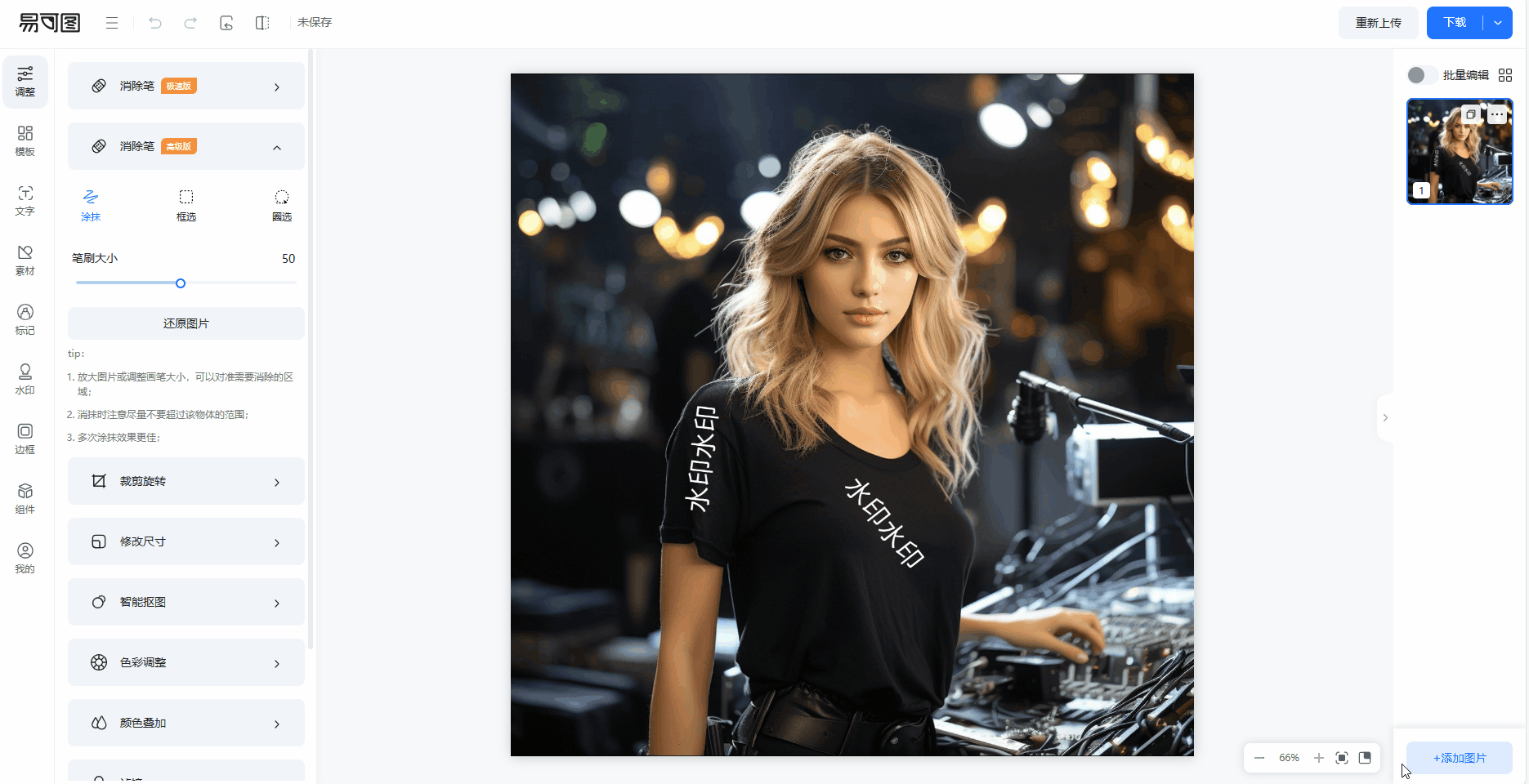 ④水印去除完毕,点击右上角的下载即可免费下载去除水印后的图片了