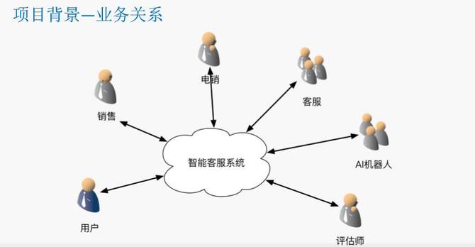 刚才提到了很复杂,整个系统串联了很多角色,有用户、销售、电销、评估师,还有AI和机器人。做系统要善于抽象,我们先有一个基于通讯的即时通讯系统。第二我们是要把通讯系统集成到业务,或者叫把这些业务搬到通讯系统上面来,核心就是这样子。