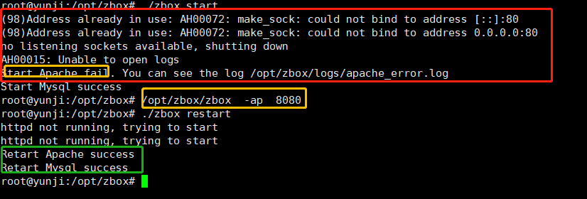 /opt/zbox/zbox -ap 8080 //修改Apache服务器的端口号为8080