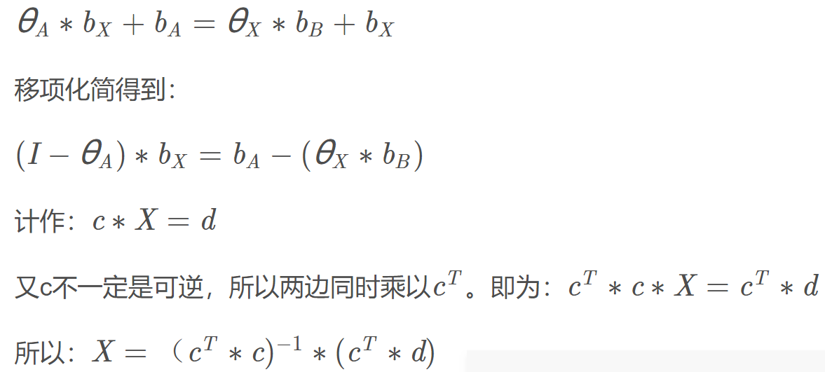 θ A ∗ b X + b A = θ X ∗ b B + b X \theta_A*b_X+b_A=\theta_X*b_B+b_XθA∗bX+bA=θX∗bB+bX