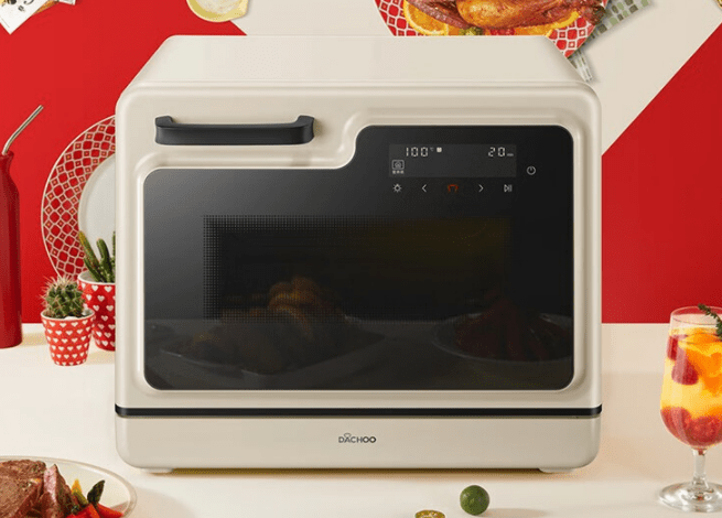 大厨DB610台式蒸烤箱“是一款高效目智能的蒸烤一体机。其采用ROKIAPP控制+130道菜谱,让你可以远程操控百种菜谱,无论你是新手还是高手,都可以轻松上手