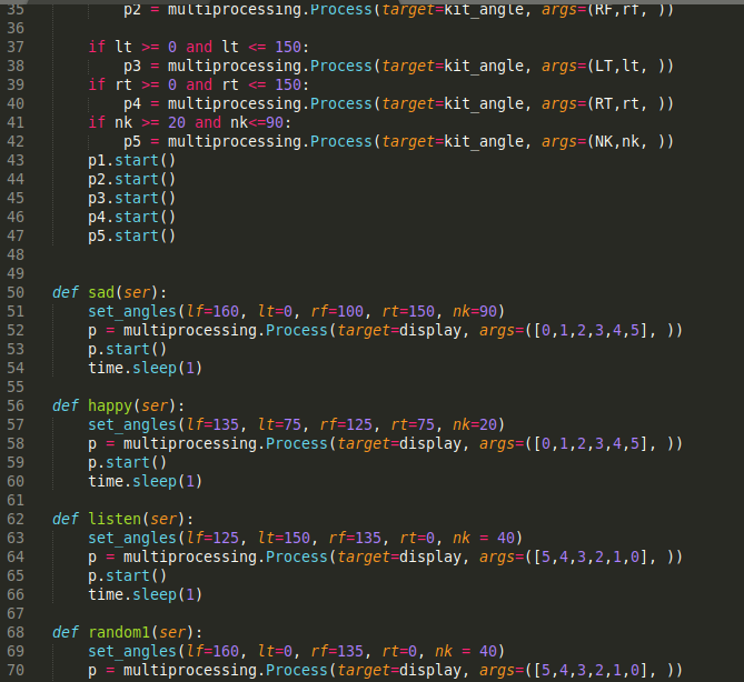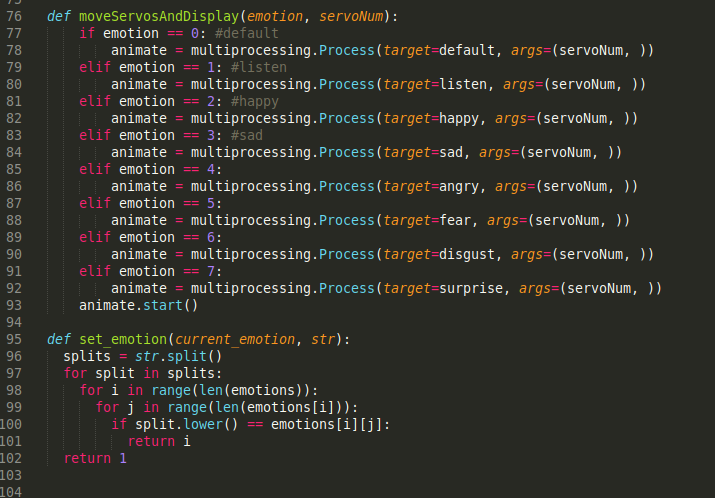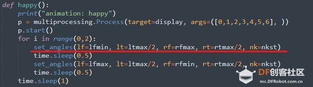 当快乐的情感被脚本触发时,调用显示快乐表情的函数,伺服电机移动到预设的角度,显示器播放快乐的眼睛动画。