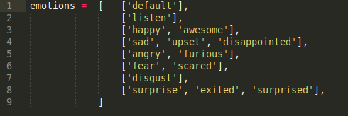 Ewon就是这样做到“理解”人类情感的。这个不是最好的方法,有时关键字与预定义的情感不一致,但就目前而言,这种方法效果很好,可以随时添加更多的关键字来提高检测的准确性。