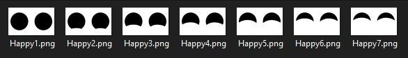 这是我在PhotoShop中设计的图像序列,当按顺序播放时,会生成一个动画。每个情感类都有类似的图像序列。现在要显示任何情绪,你所要做的就是调用组成动画的特定图像序列。这些文件在“Display files”文件夹中。