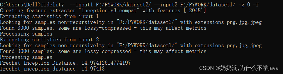 讯享网fidelity --input1 F:/PYWORK/dataset2/ --input2 F:/PYWORK/dataset1/ -g 0 -f