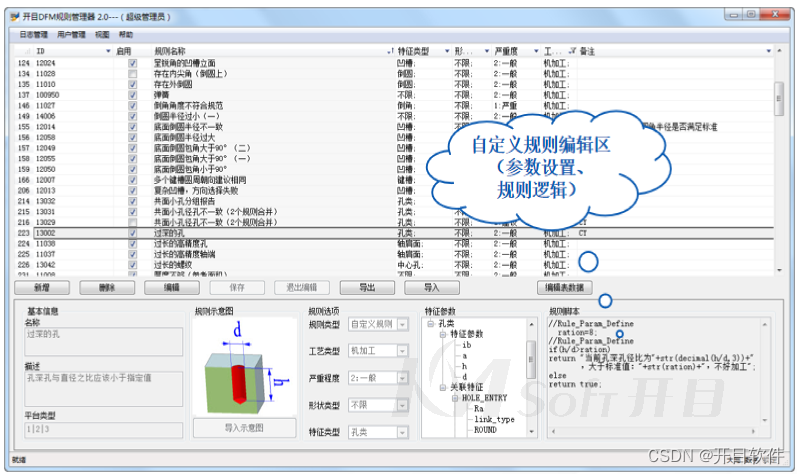 ·自定义设置规则参数和数据表,开放性好,扩展性强,维护方便,简单易学