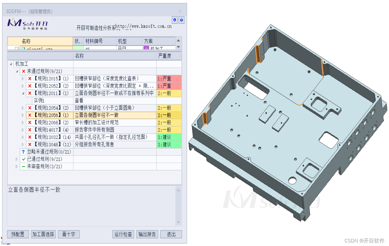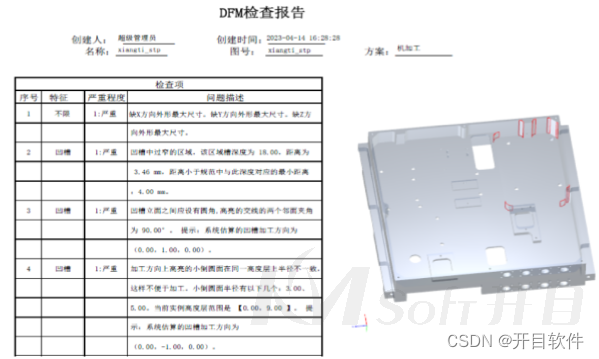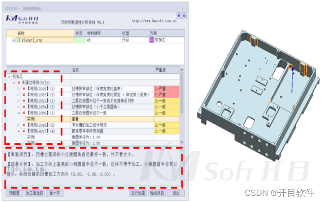 3DDFM是一款基于三维CAD进行产品可制造性分析的软件,根据规则对产品设计模型进行检查和分析,帮助设计、工艺、制造工程师尽早发现产品模型中难以制造、无法制造或制造成本高的设计缺陷,减少工艺评审时间以及设计与工艺往返次数,缩短产品开发周期。