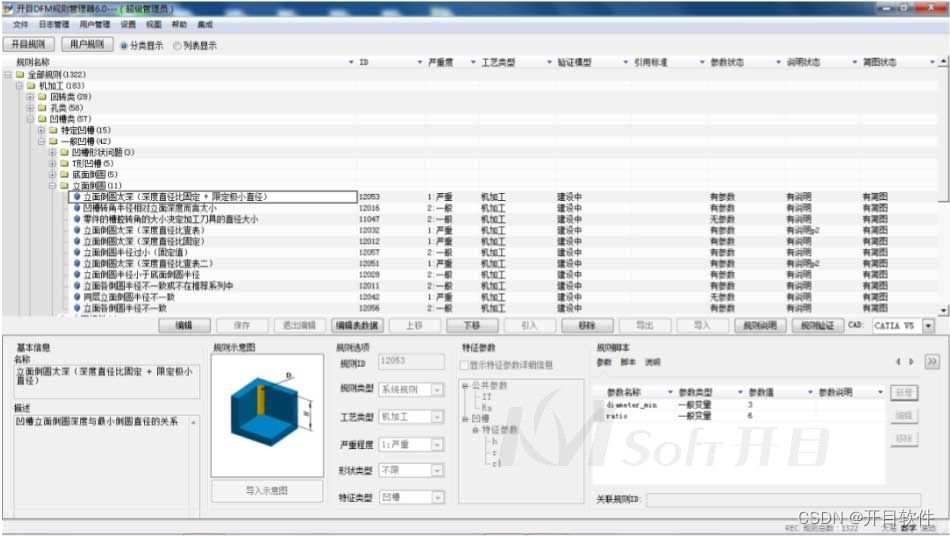 3DDFM基于发现“常见易犯错”的设计思想,以产品的工艺审查流程驱动,充分考虑可制造性的各环节,包含审查的便捷性、特征识别率,规则来源的权威、全面性,企业特性规则的扩展性、易维护性,审查结果的展示和应用场景,实现提升设计质量,缩短产品研发周期的目标,其核心功能如下: