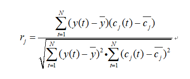 常用的相关系数法是将本征模式分量与原信号之间的相关系数作为一个指标,来判断哪些本征模式分量是信号的真实分量,哪些是虚假的、无意义的本征模式分量,将这些虚假本征模式分量剔除,作为残差的一部分。为了避免幅值较小而又是真实的