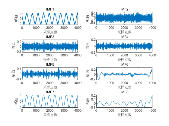 如图2所示。其中,IMF1是原始输入信号y,IMF2-IMF7是从高频到低频的IMF分量,IMF8是残余分量。