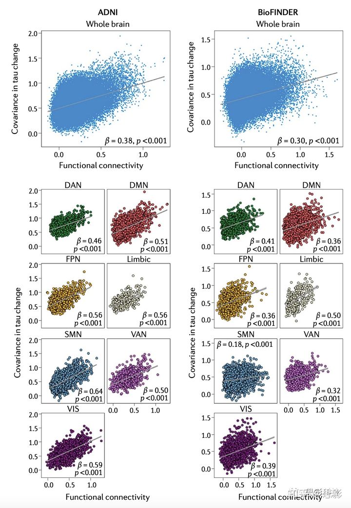 图4 | tau-PET变化中功能连通性与协方差之间的关联