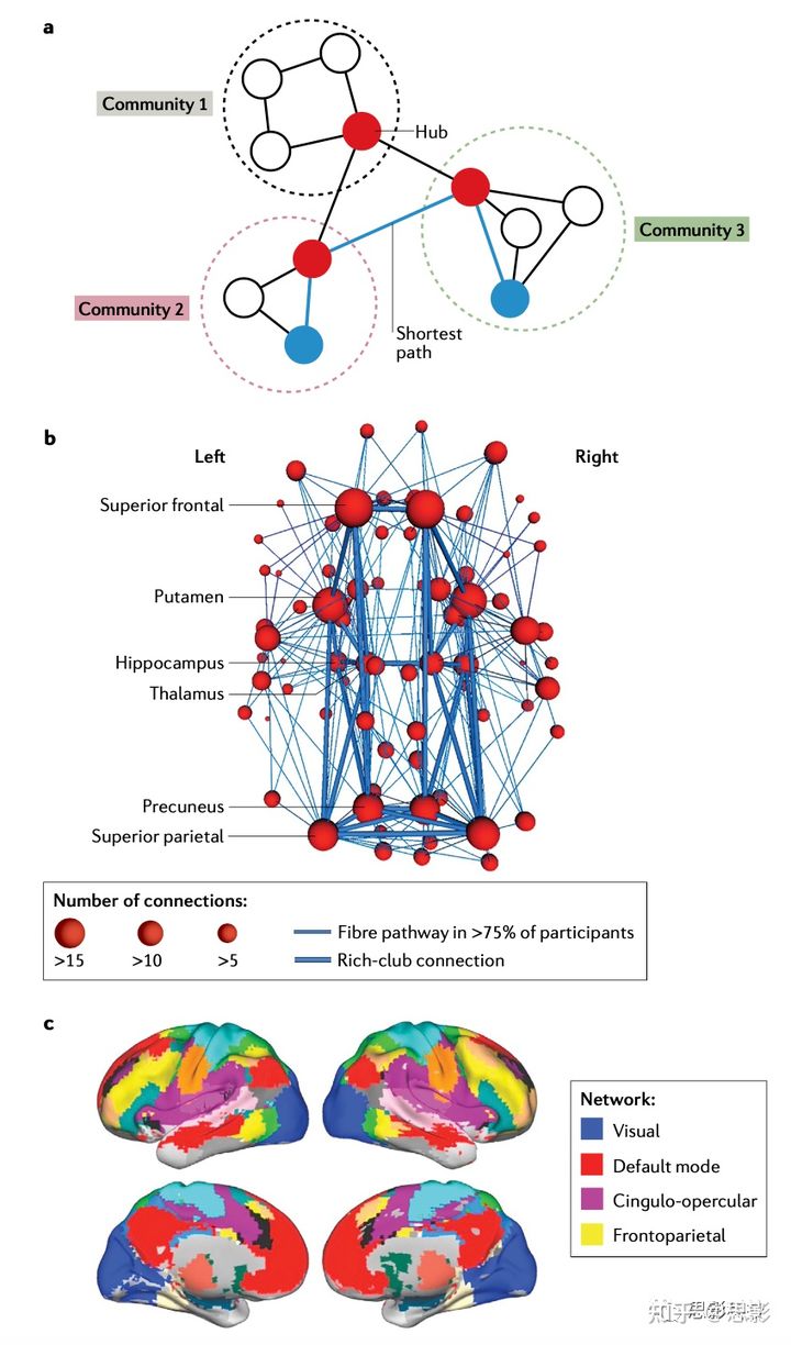 图1 |网络模型。a.示例网络模型。b. rich-club区域示例。c.人脑功能连接组示例