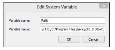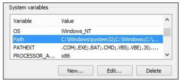 5. 在新的弹出对话框中,我们需要单击 Variables ( 变量) 下的 PATH 文本框,并键入Java 安装文件夹的路径: