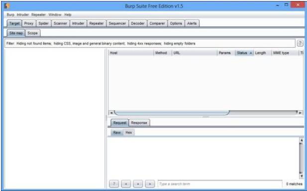 我们在下面的截图中可以看到,我们运行了 Burp 并显示了默认界面:
