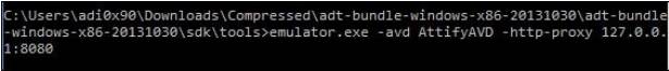 7. 一旦设置了代理,我们将启动我们的模拟器与我们刚刚设置的代理。 我们将使用以下模拟器命令来使用 http-proxy 选项: