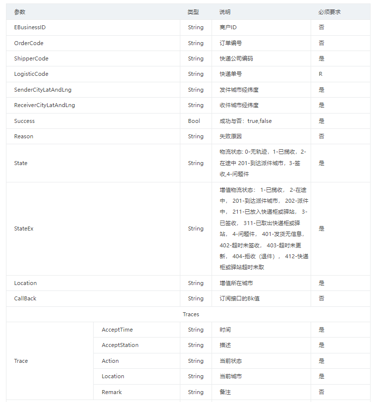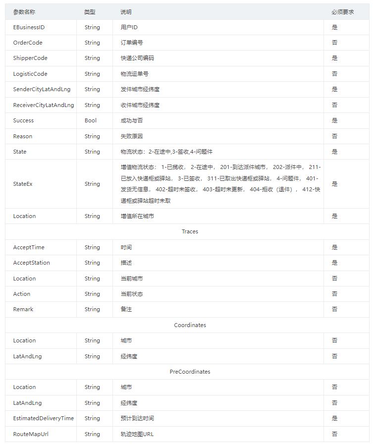 (3)返回的物流跟踪信息按照发生的时间升序排列。