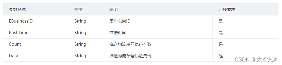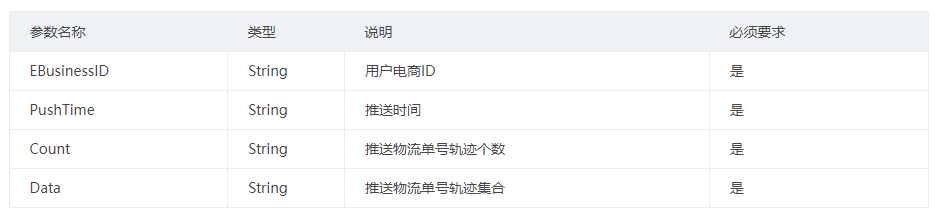 通过轨迹查询(订阅查询)接口订阅到快递鸟的数据,快递鸟推送时,会将推送的RequestType的值置为102,同时返回下列数据