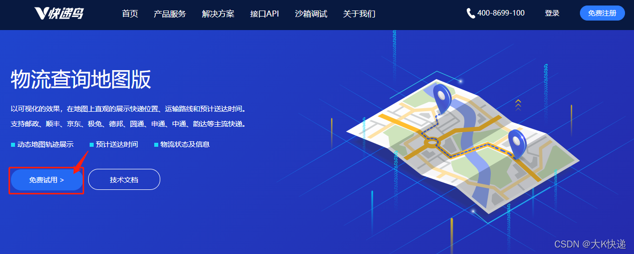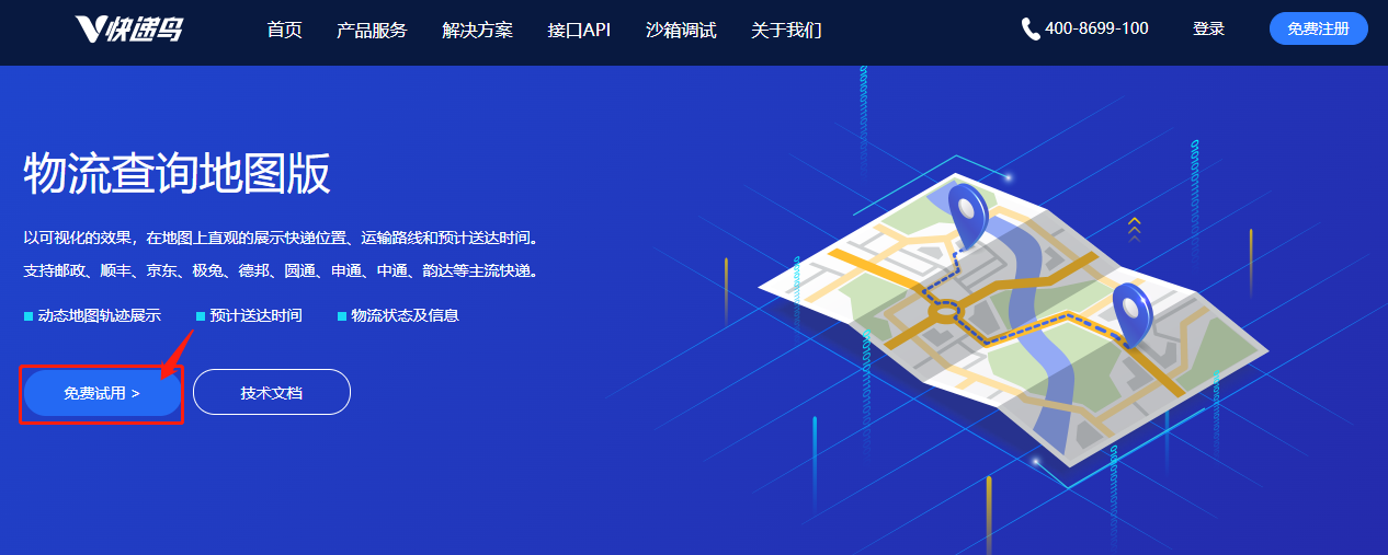 (7)免费试用快递鸟物流查询地图轨迹接口官网地址:http://www.kdniao.com/product-mapTrack1