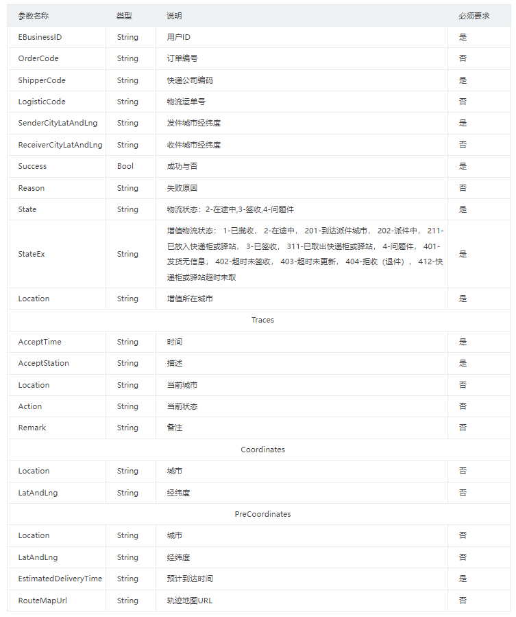 (4)运单物流信息全量推送(每次推送的运单物流信息包括运单当前所有的的物流信息)。