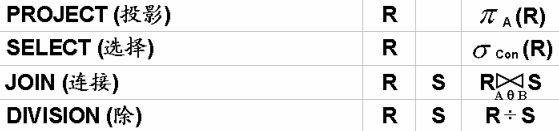 - 关系代数操作以一个或多个关系为输入,结果是一个新的关系。