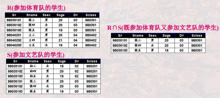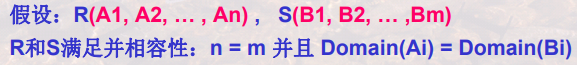 - 对于任意的i关系R的第i个属性和关系S的第i个属性的域相同