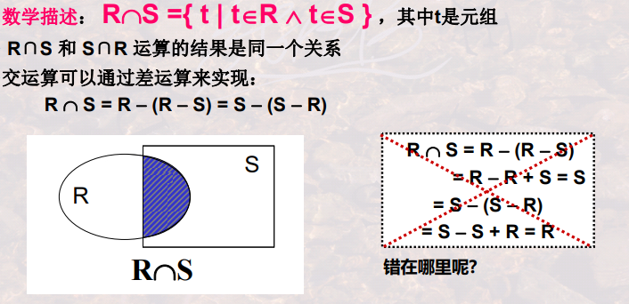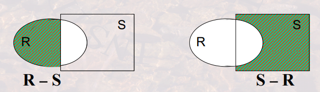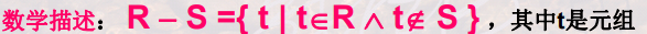 R - S, 它由出现在关系R中但不出现在关系S中的元组构成。