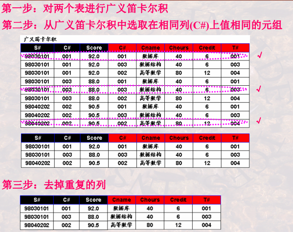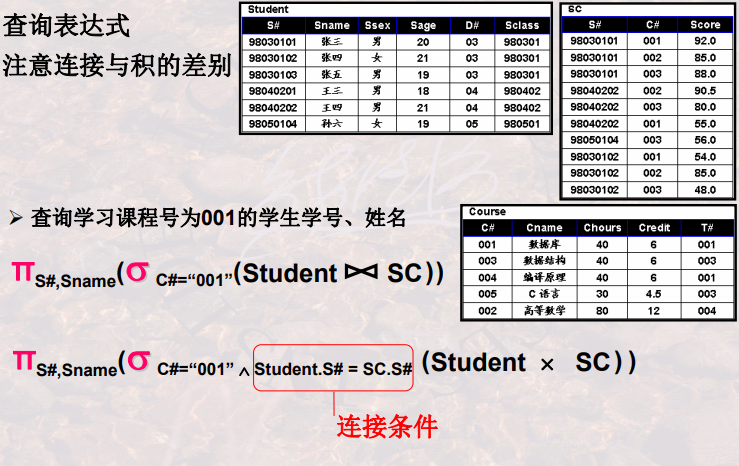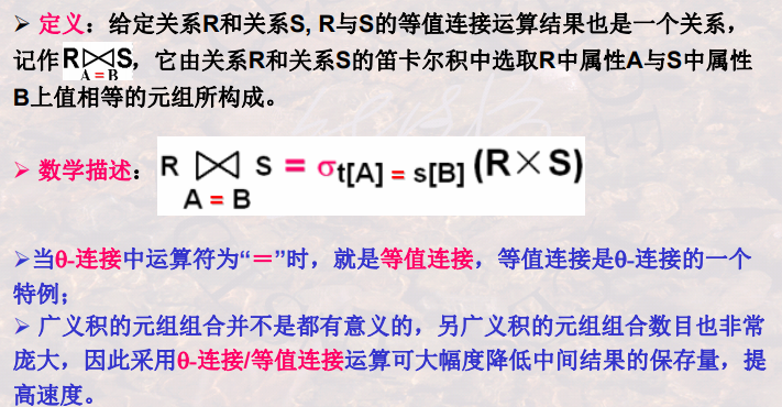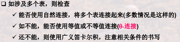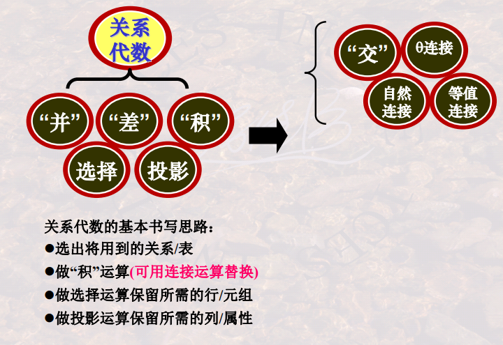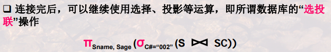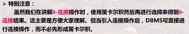 使用连接操作比使用积操作选择投影操作要高效一些。