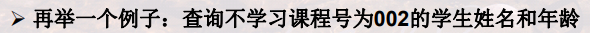 另一种思路:把学过002号课程的学生找出来从学生表中差去的思路
