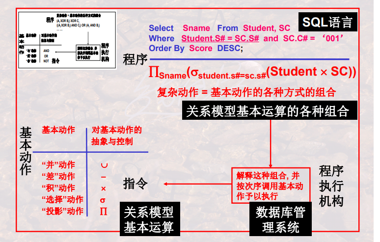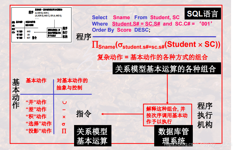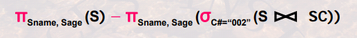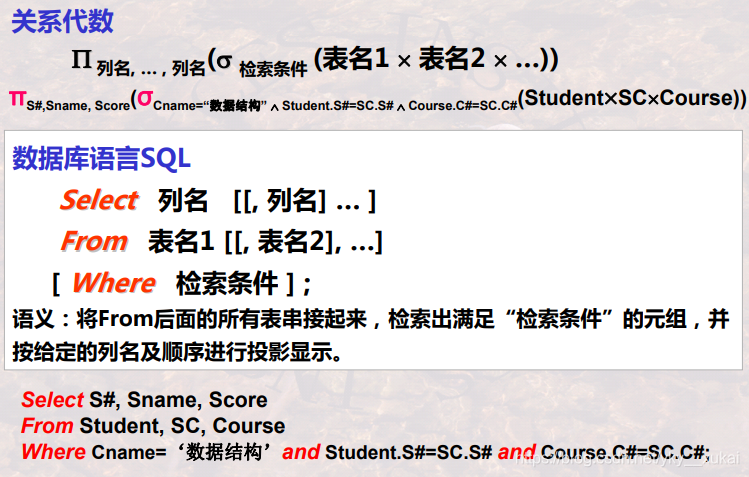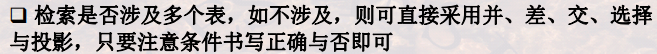 - 用对关系的运算来表达查询,需要指明所用操作, 具有一定的过程性。