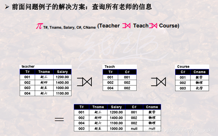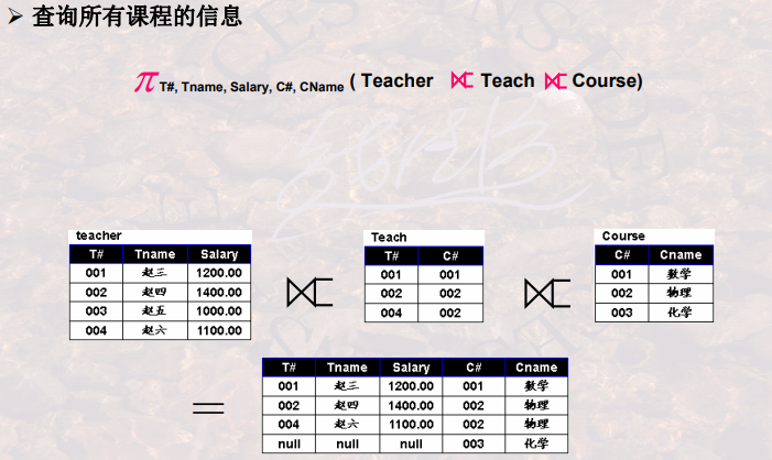 按上式连接的结果,003号教师的姓名和工资信息丢失了。