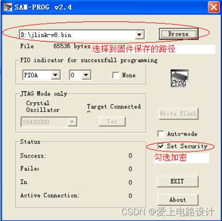 双击SAM-PROG v2.4图标 ,运行SAM-PROG v2.4烧录软件,按下图所示进行设置。