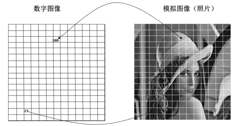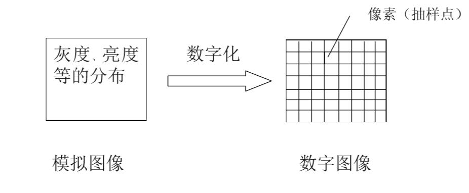 把模拟图像分割成一个个称为像素的小区域,每个像素的亮度或灰度值用一个整数表示