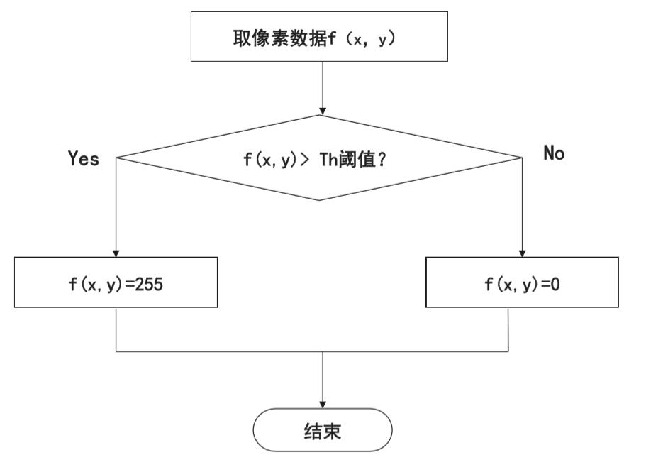 程序逐个判断像素点的pixel_value > Th ? 如果为true 设置此像素点的灰度值为255,为false设置此像素点的灰度值为0,由此处理后的图像会呈现黑白鲜明的对比。