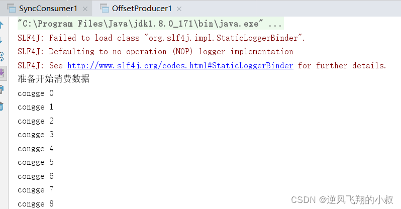 运行这段代码,然后再次使用上面的producer发送消息,观察控制台输出效果,可以看到,数据消费的offset的位置从5开始