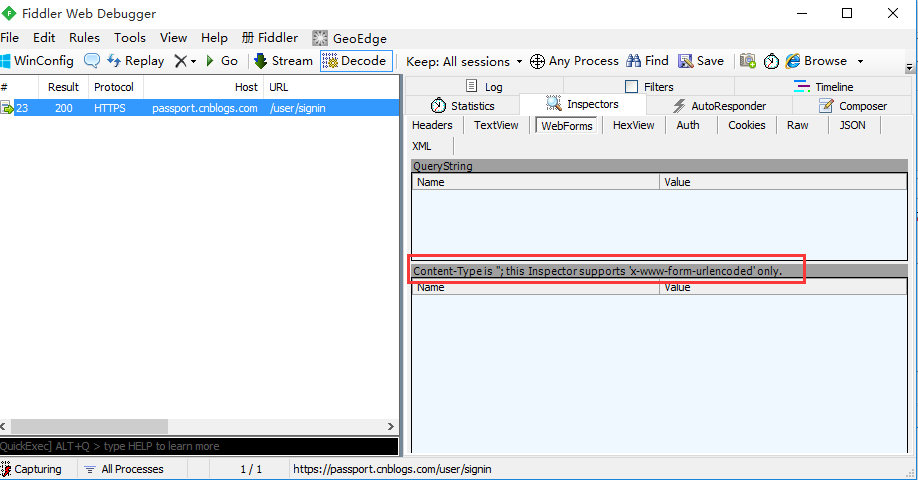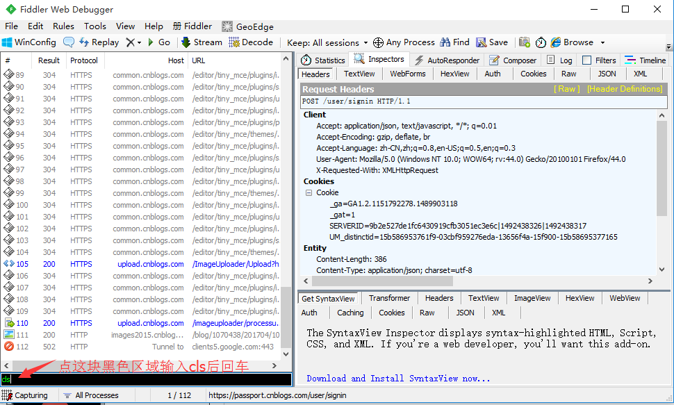 1.打开fiddler工具,然后浏览器输入博客首页地址:http://www.cnblogs.com/yoyoketang/