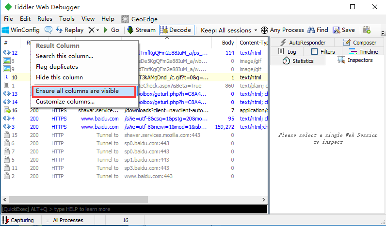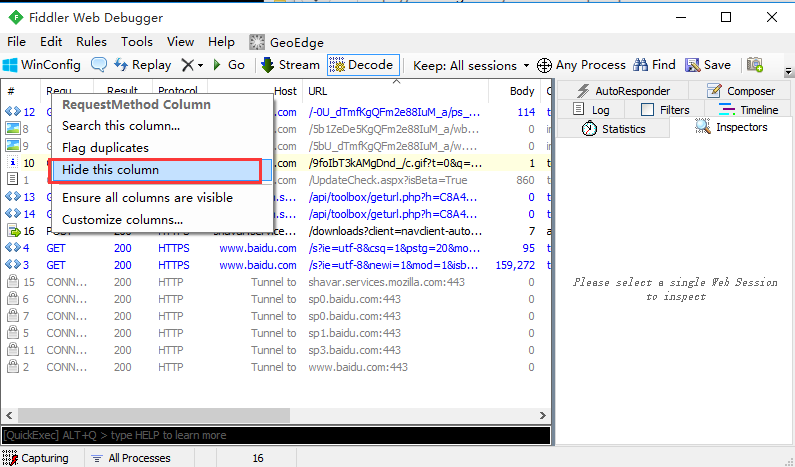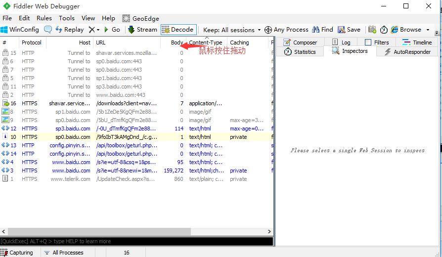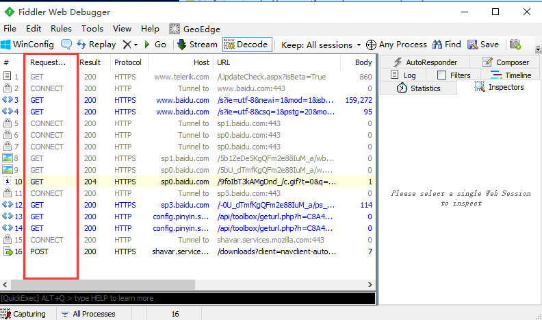 1.用fiddler抓包时候,打开百度网页:https://www.baidu.com