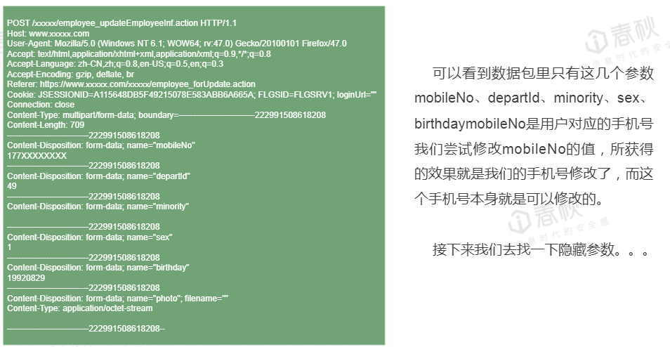 view-source:https://www.xxx.com/ua/employee/forUpdate.do查看下这个页面的源代码,找到了一个参数loginId,这个参数是对应用户身份的而我们发现 上面的数据包里没有这个参数,那么我们是否可以自己添加上去呢?