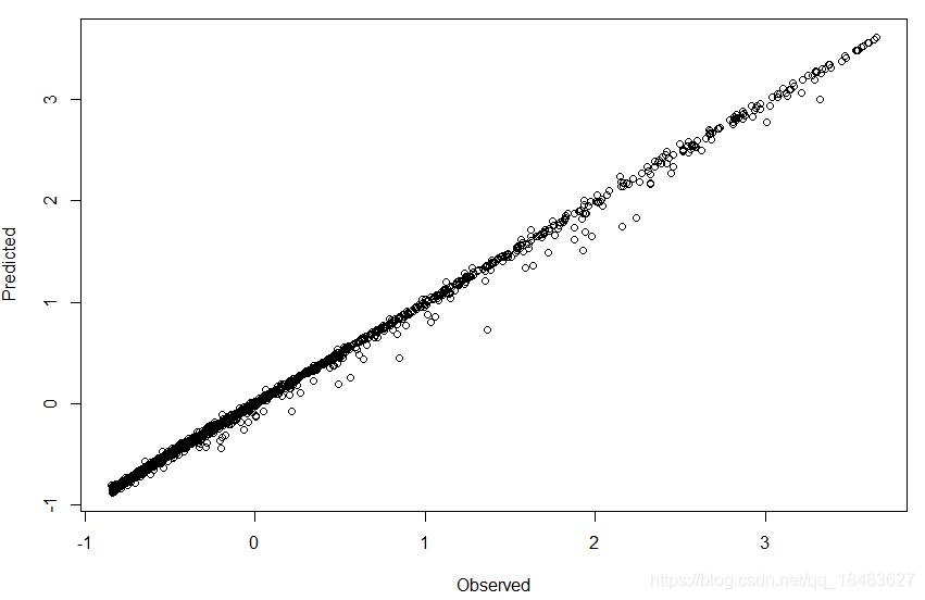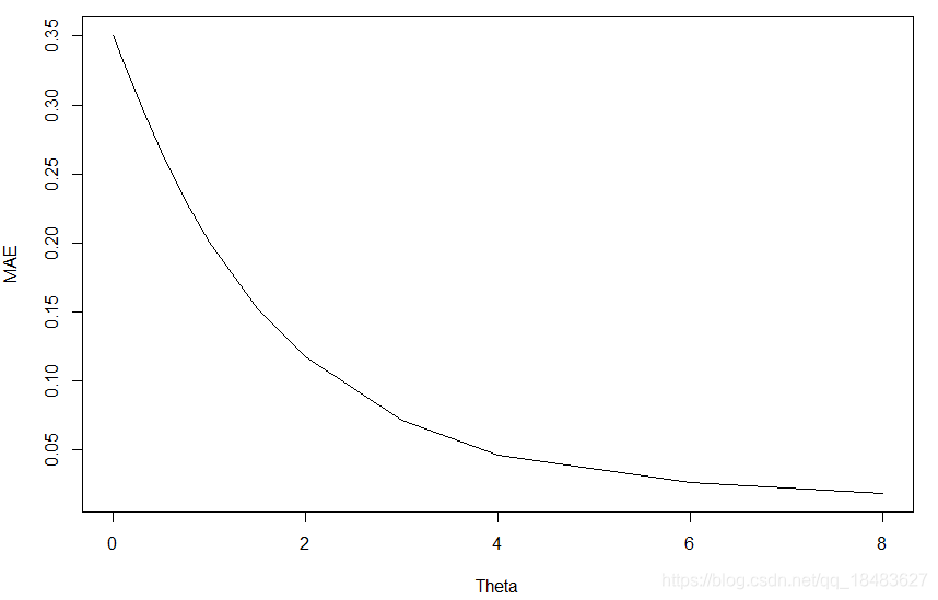 讯享网# Make multivariate embedding Embedding <- c("R","C1","C2","P1") block <- d[,Embedding] # Normalize data block <- as.data.frame(apply(block, 2, function(x) (x-mean(x))/sd(x))) # Define the target column (C1 = column 2) targ_col <- 2 # Please reduce the number of data points if the calculation takes long data_used <- 1:2000 # Explore the best weighting parameter (nonlinear parameter = theta) # Best theta is selected based on mean absolute error (MAE) test_theta <- block_lnlp(block[data_used,], method = "s-map", num_neighbors = 0, # We have to use any value < 1 for s-map theta = c(0, 1e-04, 3e-04, 0.001, 0.003, 0.01, 0.03, 0.1, 0.3, 0.5, 0.75, 1, 1.5, 2, 3, 4, 6, 8), # We try many thetas to find the best parameter target_column = targ_col, # Specify the target column silent = T) # Check MAE and theta plot(test_theta$mae~test_theta$theta, type="l", xlab="Theta", ylab="MAE") # Best theta = 8 in this case best_theta <- test_theta[which.min(test_theta$mae),"theta"] # Do S-map analysis with the best theta smap_res <- block_lnlp(block[data_used,], method = "s-map", num_neighbors = 0, # we have to use any value < 1 for s-map theta = best_theta, target_column = targ_col, silent = T, save_smap_coefficients = T) # save S-map coefficients Visualize results Observed v.s. Predicted smap_out <- as.data.frame(smap_res$model_output[[1]]) plot(smap_out$obs, smap_out$pred, xlab="Observed", ylab="Predicted") Time series of fluctuating interaction strength smap_coef <- as.data.frame(smap_res$smap_coefficients[[1]]) colnames(smap_coef) <- c("dC1dR","dC1dC1","dC1dC2","dC1dP1","Intercept") # Plot all partial derivatives trange <- 1:200 windows(width=6, height=4) plot(smap_coef[trange,"dC1dR"], type="l", col="royalblue", lwd=2, xlab="time", ylab="Interction strength", ylim = c(-1.0, 2.5), main = "Fluctuating interaction strength") lines(smap_coef[trange,"dC1dC2"], lwd=2, col="red3") lines(smap_coef[trange,"dC1dP1"], lwd=2, col="springgreen3") abline(a=0 ,b=0 , lty="dashed", col="black", lwd=.5)