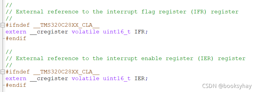 后面是PieCtrlRegs这个变量的声明:extern volatile struct PIE_CTRL_REGS PieCtrlRegs;