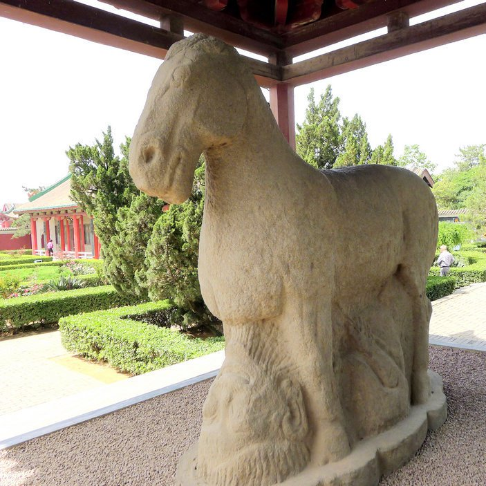 霍去病于元狩六年(公元前117)病逝,汉武帝为纪念他的战功,在茂陵东北为其修建大型墓冢,状如祁连山。封土上堆放着巨石,墓前置石人、石兽等。