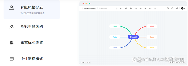 思维导图编辑完成后,作品虽然完成了,但还可以利用MindNow对整体风格进行调整,如调整主题风格、丰富图标样式等,轻松打造一份个性化的思维导图。