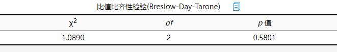 | 比值比齐性检验(Breslow-Day-Tarone) | 展示Breslow-Day比值比齐性检验。 |