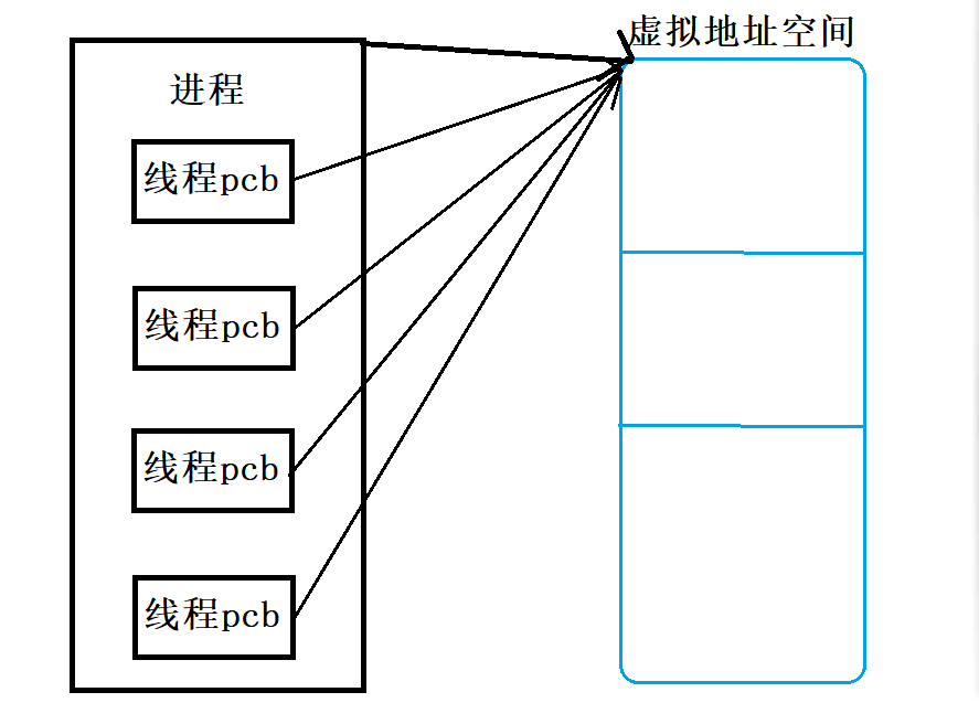 在传统操作系统中对程序的描述方式分为pcb和tcb即进程和线程;而在Linux下其进程和线程均是通过pcb进行描述的;pcb:是一个文件描述信息,其使用虚拟地址空间对内存进行访问;在这里就有了进程和线程的区别。一个进程拥有一个虚拟地址空间,而多个线程拥有一个虚拟地址空间;可以这么理解,多个线程(一个线程组)构成一个进程;所以说Linux下没有真正的线程。Linux下的线程是轻量级进程。图解如下: